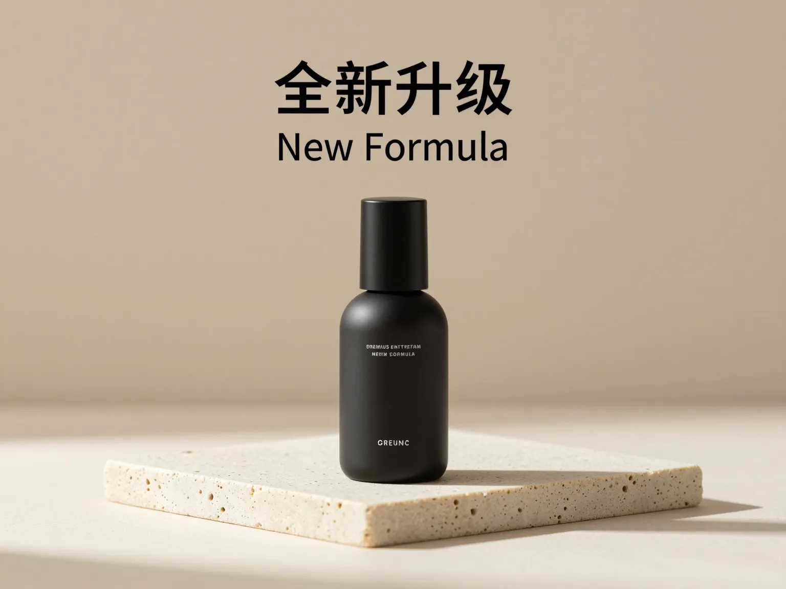 Typography: Chinese headline "全新升级" at top center, English subtitle "New Formula" below, modern sans-serif, high readability.
